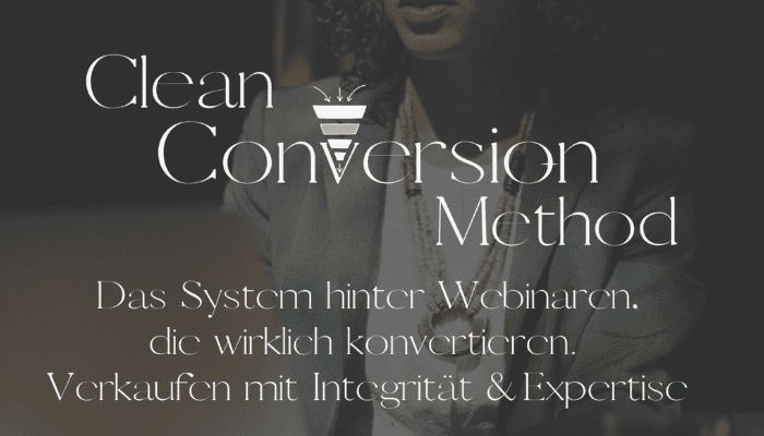 Genau diesen Ablauf lernst Du in meinem Webinar-Kurs „Die Clean Conversion Method“. Dort zeige ich Dir, wie Du Dein Wissen so aufbaust, dass ein Bedarf entsteht. Gutes Wissen ist nur gut, wenn es richtig strukturiert und aufgebaut ist und dem Kunden hilft, sein Problem zu erkennen und dann eine informierte Entscheidung zu treffen. Im Kurs zeige ich Dir ganz exakt, wie.